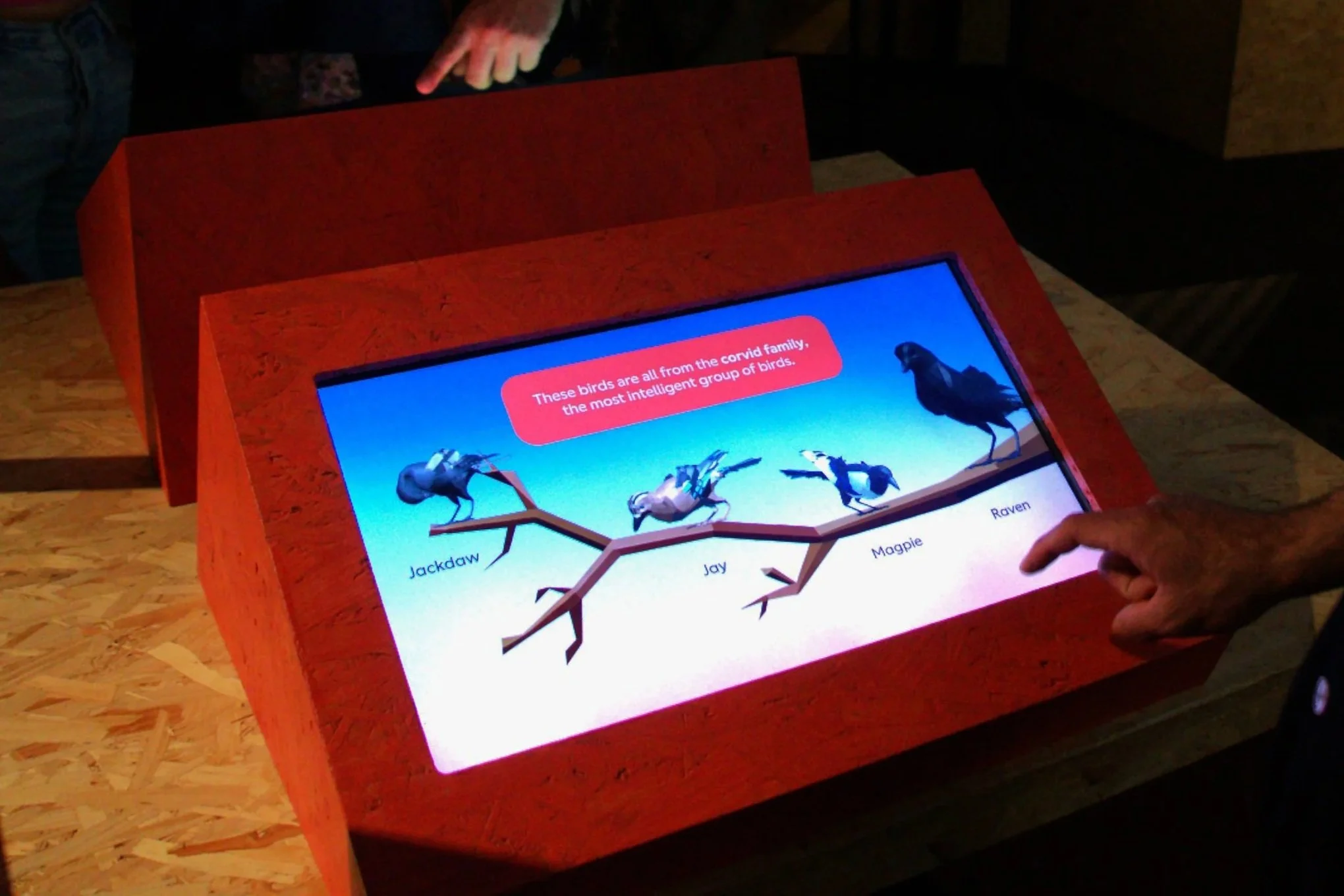 Exhibits included three large AV installations created by Palma Studio, a bird intelligence game developed by Clay Interactive, and multiple digital and tactile exhibits developed by NHM’s technical production team.